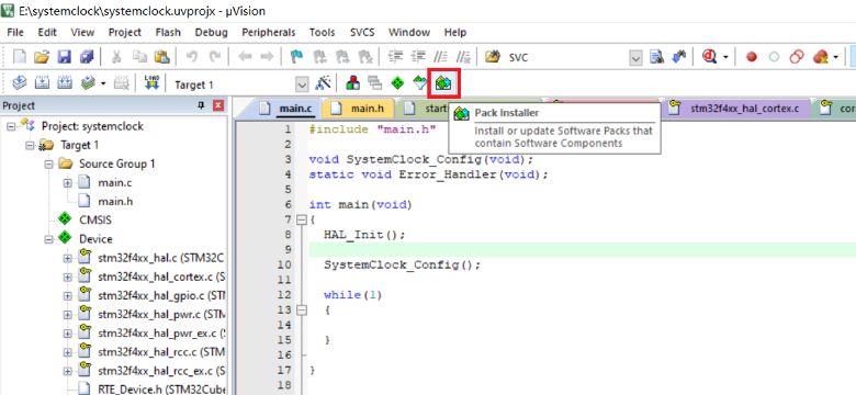 1.單擊快捷鍵Pack Installer,進入軟件包管理界面
