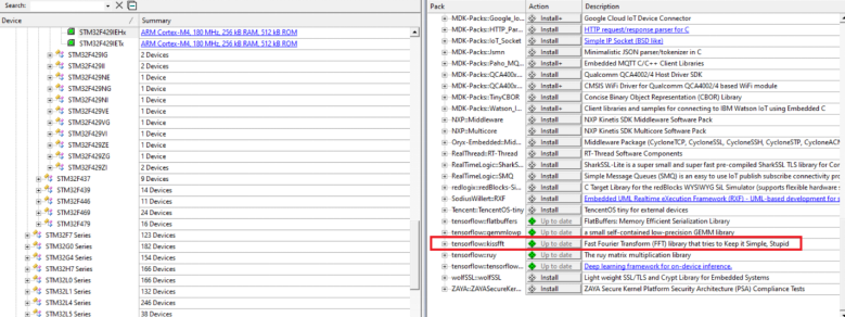2.找到kissfft選項,單擊Install按鈕,保持電腦聯(lián)網(wǎng),keil會幫我們下載相應(yīng)的安裝包并安裝。