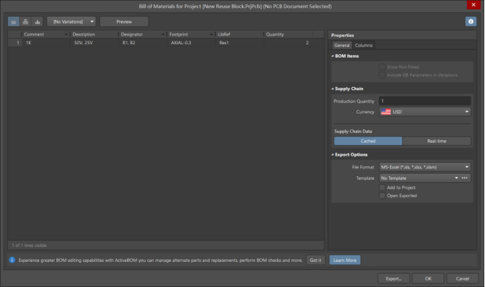 在BOM中此元器件的信息基本相同,但是Description對元器件的規(guī)格描述存在差異。默認打開BOM時,Description信息是不作為篩選條件的,如何添加為篩選條件,進行如下操作。