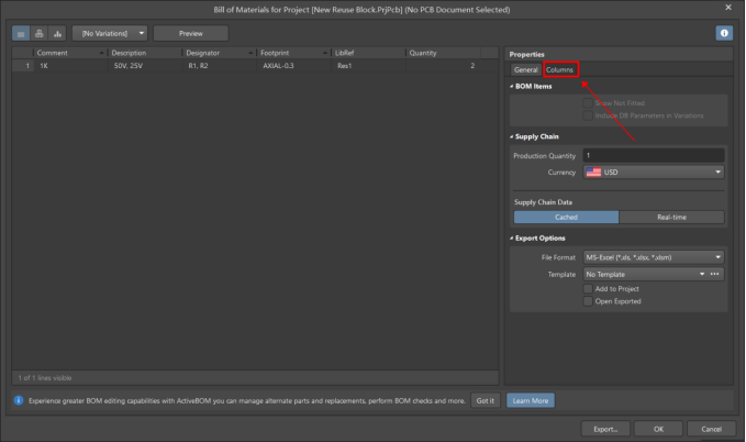 在BOM中此元器件的信息基本相同,但是Description對元器件的規格描述存在差異。默認打開BOM時,Description信息是不作為篩選條件的,如何添加為篩選條件,進行如下操作。