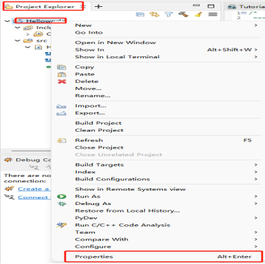 1、在Project Explorer視圖中,右鍵單擊項目工程并選擇Properties。打開“項目工程屬性”對話框。