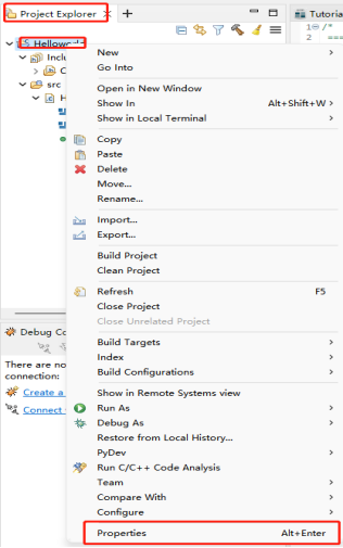 1、在Project Explorer視圖中,右鍵單擊項(xiàng)目工程并選擇Properties。打開(kāi)“項(xiàng)目工程屬性”對(duì)話框。