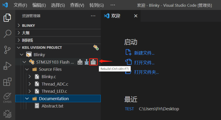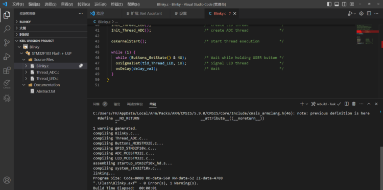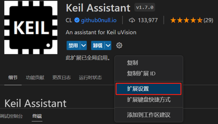 1 打開VS code點擊擴展欄,在搜索框中輸入keil。可以看到有一個“Keil Assistant”的插件。
