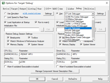 應用場景:在Option for?Target下的Debug標簽下,發現一旦選擇ST-Link進行Target的調試時,就會出現整個軟件閃退的情況。