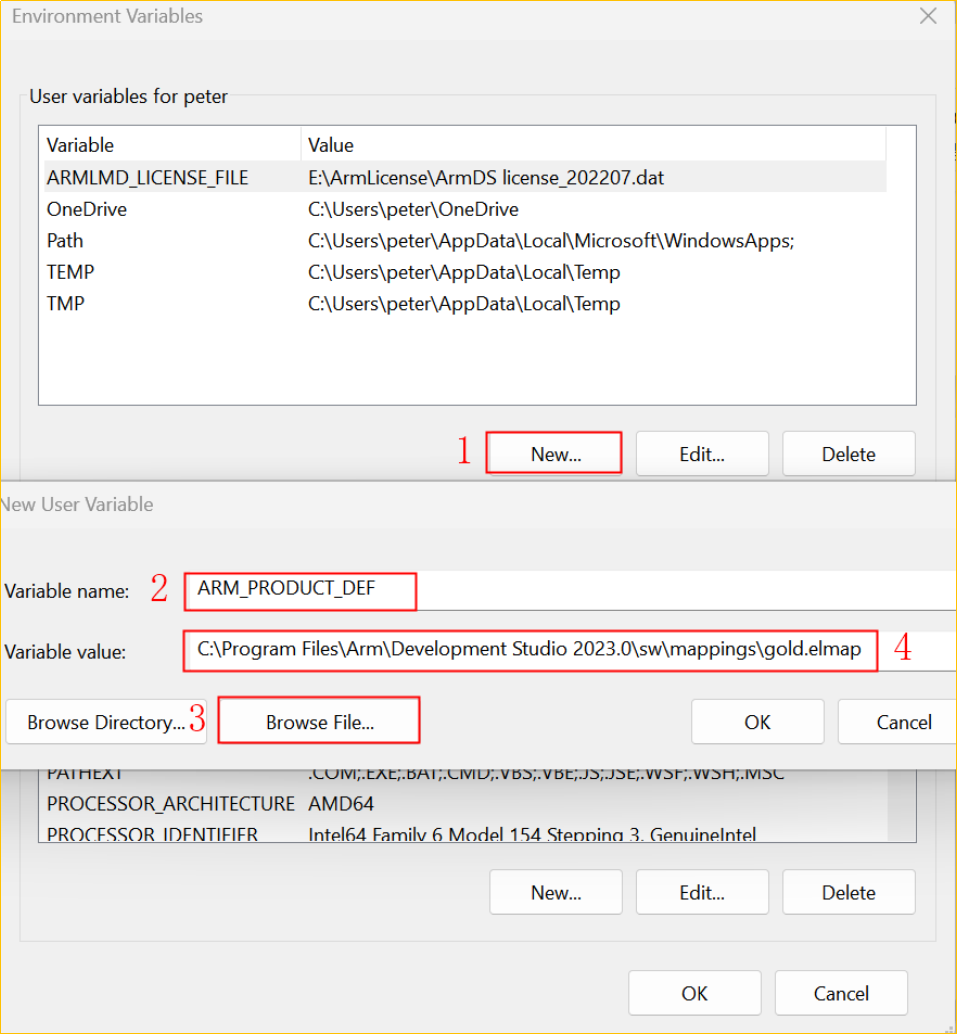 ARM_PRODUCT_DEF=elmap 文件的絕對路徑設置步驟和ARMLMD_LICENSE_FILE 類似,如圖4-4所示: